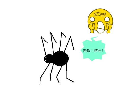 竟然有一隻可怕橫紋的「怪物」,就更囂張的爬到我的床上,趁我在鋪床單的時候,邁開八隻腳越我的床。好像是把我的床當山一樣在爬啊?就因為他爬到我的床上,所以我根本沒有辦法拿出殺蟲劑噴他。噴了他,我的床就糟了!看來這「怪物」是來跟我鬥智的哩!