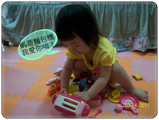 瑋瑋也很誇張,嘴上說著「愛妳,」卻拿小小的腳掌來踩我的大腿,或是趁我在忙的時候,要跟我搶我手中正在寫字的筆,再不然就是哭爹喊娘的吵著要「吃餅乾,」事實上前一分鐘才吃完飯菜呢!
