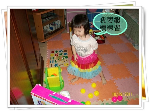 瑋瑋有點心灰意冷。我假裝意猶未盡的繼續丟球,瑋瑋又萌發了興致,繼續嘗試丟球…。而且還有點忘我。