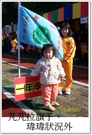 今天是芃芃(大女兒)學校的運動會。不過天氣真的好冷喔!風吹來的時候,我的頭都發疼了。我和瑋瑋都正在感冒,我們是憑著意志力,才有辦法一直陪伴著芃芃哩!