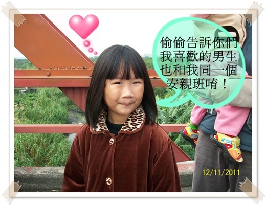 大女兒開心就好。大女兒還說:「我喜歡的×××也有在那間補習班哩!他是帥哥唷!可是…我後來又覺得□□□比較帥耶!」我就好奇問大女兒,「那妳到底喜歡誰呀?」大女兒肯定的說:「我比較喜歡□□□,但我不會因為想要見到他,就回到原來的安親班。」喔!大女兒真有主見。呵!