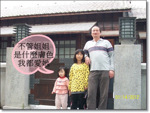 只是我還是希望大家多看看我大女兒的優點,不是只看到她皮膚黑這一點呀!小女兒雖然人見人愛有時卻也很『青番』咧!內在比較重要啦!還有啊!大家也行行好,不要再對我大女兒說:「妳怎麼那麼黑啊?」「那麼黑做什麼?」我女兒真的會很受傷。