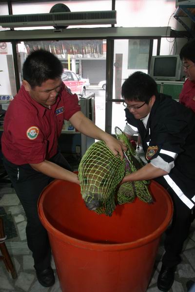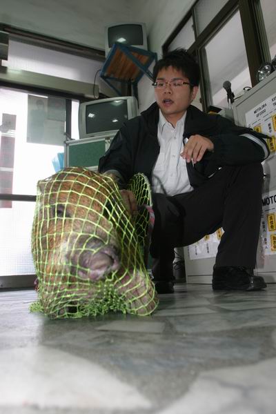 一隻重約三十公斤的山豬,昨在花蓮市尚至路巷子閒逛,有民眾稱山豬已經閒逛一天一夜找不到回家的路於是報警,花蓮消防分隊獲報後派兩名警消及一位替代役男前往圍捕抓山豬,警消吳佳奇手持補狗網放在山豬面前,沒想到山豬居然衝進網內,不到一分鐘山豬就自投羅網,讓他直說「真是笨豬!」但山豬衝撞力量大,補狗網的伸縮杆子還因此斷裂,捕獲的山豬因缺適合鐵籠存放,只好將山豬暫時關在大水桶內等民眾指認。