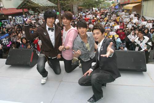 今天苦無社會新聞可以交差很苦惱,聽說偶像團體飛輪海來到花蓮,於是跑去奏熱鬧看看有沒有什麼新鮮事!一到花蓮市舊鐵道商圈遠遠望去青一色全是女粉絲,粉絲團中還有不少來自日韓馬來西亞等地的師奶粉絲,想不到飛輪海這四個奶油小生這麼紅ㄟ。