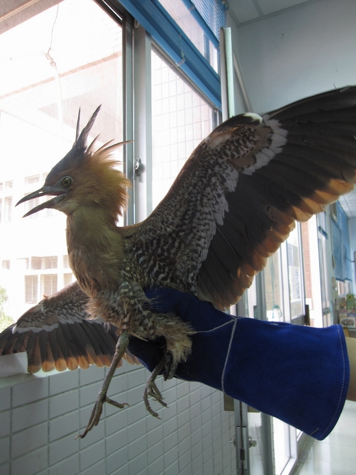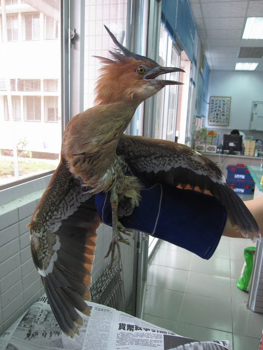 在花蓮跑新聞什麼新鮮事都有,那天位於新城鄉的大漢技術學院校園內發現一隻怪鳥受傷,被送往當地派出所,員警找遍了網路資料及鳥類圖鑑,卻找不到這不像雞也不像鷹的怪鳥到底是什麼東東,直到動物防疫所人員前往把怪鳥帶回治療,才根據鳥羽冠特徵,找到了答案。