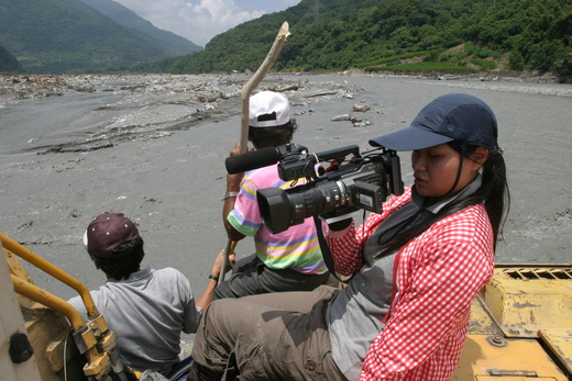 前進台東太麻里災區,省道台九線太麻里溪橋、南迴鐵路全斷了,眼前是一片滾滾泥流,為了搶進通訊中斷的香蘭部落採訪,我跟大愛電視台的記者找了一輛在河床整地的怪手司機幫忙載我們冒險涉溪,我看見一位原住民耆老在湍急溪流觀望,他跟我招手,我去攀談,原來他想回部落看看弟弟及親友,想找我跟他一起涉溪,我跟他說,等下有怪手要載我們渡河要不要一起乘坐,樸實的耆老問我說「要不要給錢阿?」我向他解釋怪手司機人很好不用錢拉,他才打消徒步涉溪的冒險,跟著我們搭乘怪手涉溪到對岸的河床。