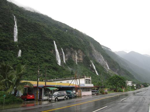 蘇花公路這條被視為全台灣最美且危險的公路,每次大雨過後不是落石就是坍方,這次芭瑪颱風雖未登陸花蓮,但卻帶來驚人雨量,秀林鄉崇德村的民宅後方山壁竟出現六道雨瀑,還有大清水隧道內也出現土石流瀑布,崇德隧道口上方的這道飛瀑更是壯觀,這就是蘇花公路雨後的景觀「美麗又危險!」