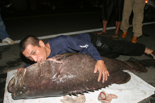 花蓮市民韓春福到花蓮港東堤岸邊釣魚,釣獲一尾長145公分、重66公斤的龍膽石斑,韓男說,他搏鬥15分鐘才將牠釣起,石斑魚晚間運回韓男的豬腳店裡,吸引大批路人圍觀,說:「厲害喔!」一群好友還一同抱起魚分享喜悅。韓男則是興奮地跟石斑玩親親。