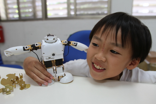 小朋友林軒說,機器人比他的臉還小好酷,林媽媽則說,真希望機器人能幫忙打掃做家事。工程師張合右說,公司已經研發更小身高只有九公分的機器人,就等著別人來挑戰。