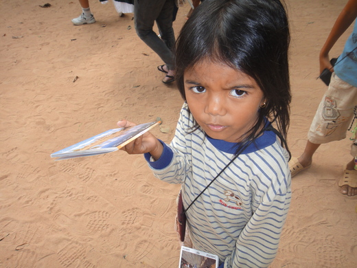 自吳哥窟回來,那發音不標準的:「給我糖果」「一塊美金」童言常縈繞腦海。此行行前未做好功課,看到同伴凰拿鉛筆、糖果給當地小朋友,才知道這地方的物資如此缺乏,當你路過時,都是小朋友除了兜售明信片、小磁鐵、手鍊等一些地方性小東西,你不買時,就是用大大眼睛用著充滿渴望眼神望著你:「給我糖果」。只要你掏出糖果給他時,隨即會陷入一群小朋友的包圍。