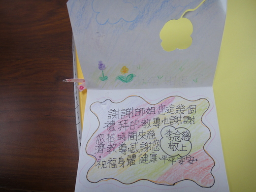 還有貼心小學員 寫了張感謝卡 讓這些日子以來服務的甘苦