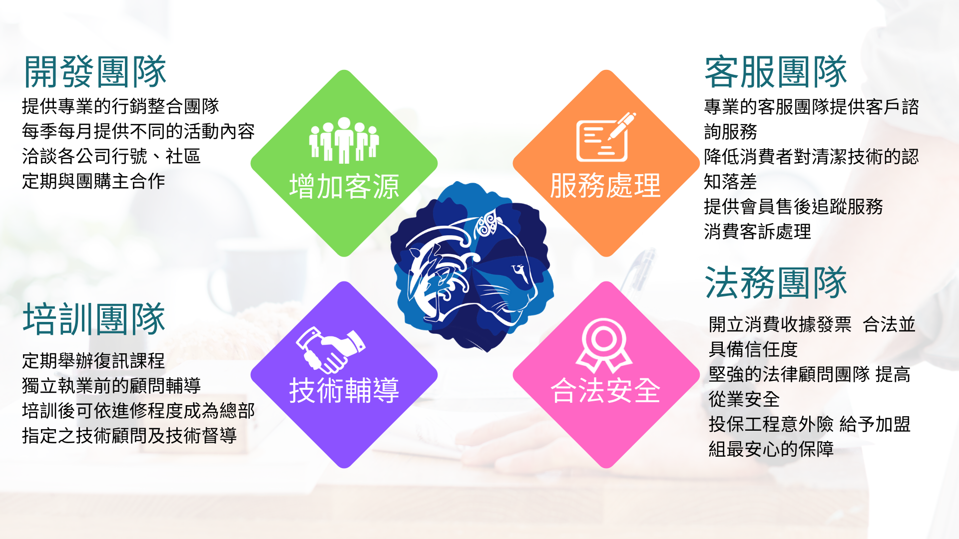8.總部提供客服團隊、案件支援、技術顧問