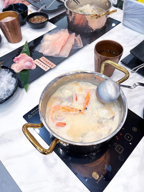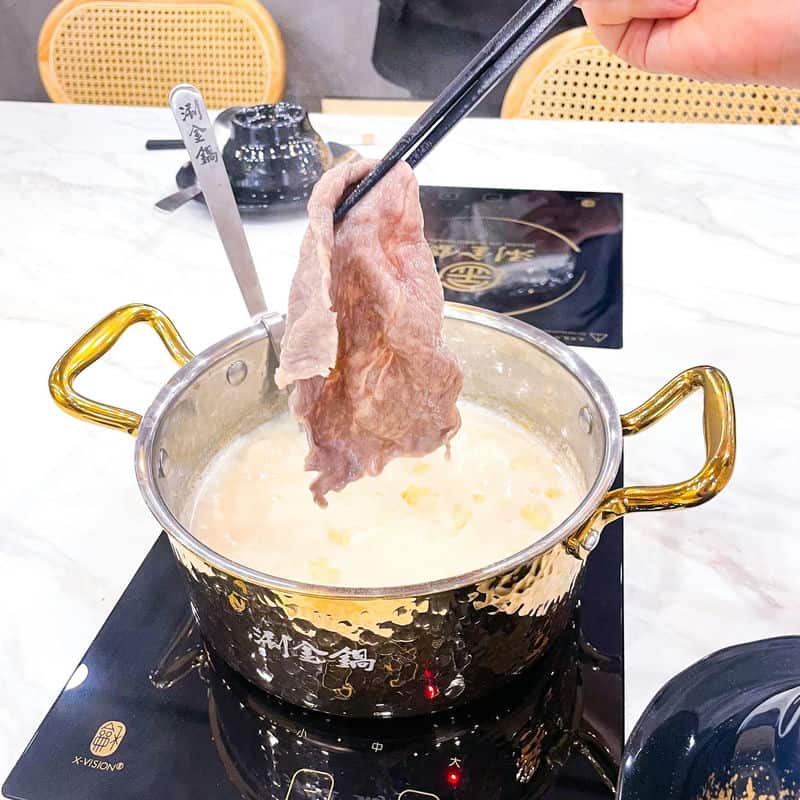 「涮金鍋」以其創意十足的湯底而聞名。麻辣牛奶雞湯鍋將麻辣的香辛味與牛奶的濃郁口感融合,讓你的味蕾在不同層次中跳舞。而日式牛奶雞湯鍋則讓你體驗奶香濃厚、入口滑順的極致享受。這些湯底不僅讓你吃得開心,還能讓家人吃得安心。