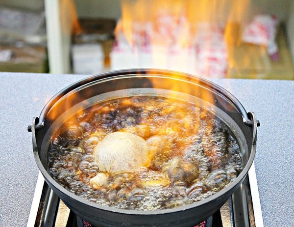 加入特製中藥包和薑片去寒暖胃 湯頭喝起來有酒的甜味及中藥包微弱香氣