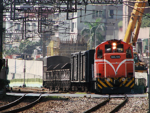 另外有趣是牽引的本務機車頭部份,主要以「送快遞」一文所介紹的DHL100型柴液機車頭和柴電機車頭為主,DHL主要以調車場調車為重,要在路線上看到它牽引車廂行駛,全台只有此區間,而柴電機車頭部份,較固定其中之一就是R119,讓人聯想到119救護車,二種機車頭把要修理火車當快遞又像病人一樣接送,看到就覺很好玩。