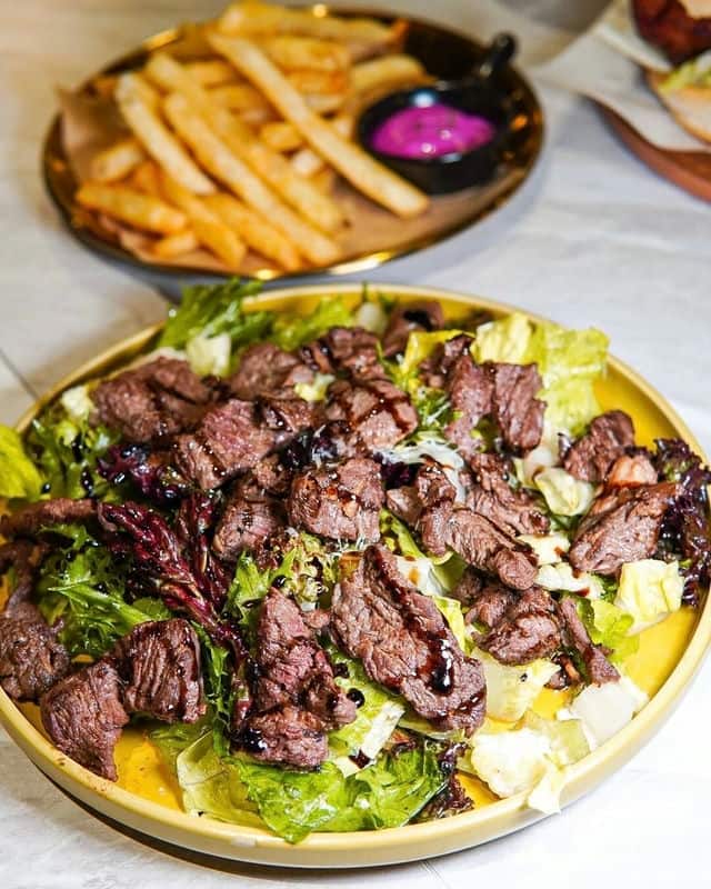 接著,我們品嚐了主廚特製的火烤牛肉沙拉,這道菜絕對不是一般的沙拉。精心烤製的牛肉帶著濃濃的燒烤香氣,搭配爽口的蔬菜沙拉,每一口都是一場味覺的盛宴。