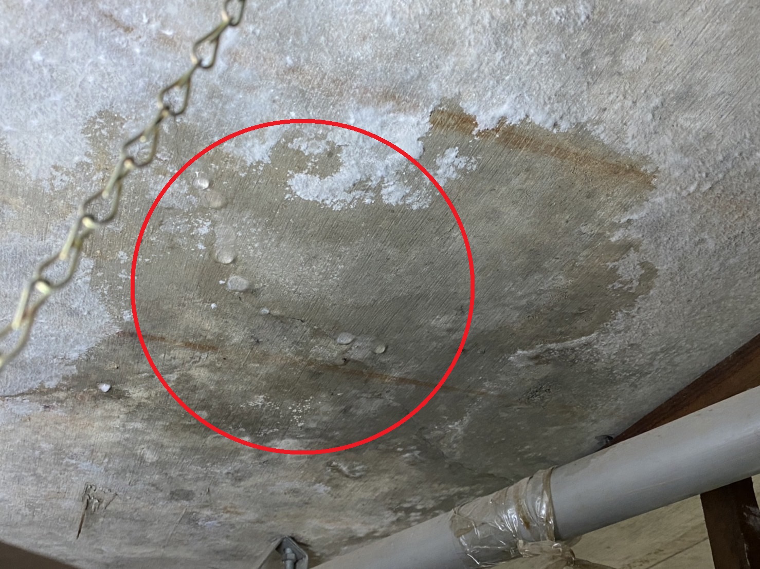 2.水源開啟狀態下,牆壁或天花板樓水漏不停,冷(熱)水管或排水管的機率很大,冷(熱)水管測試可用,停水測試法。排水管則用顏料放流法。