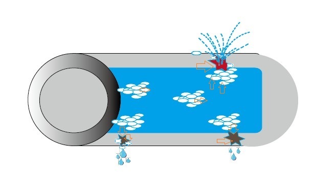 1.開關水法:假設天花板或牆壁24小時滴(滲)水,就要想想哪個地方附近是不是有水管經過?假設有,先把水管的水源關閉,並排空管內的水,看是否還有滲水現象,若幾小時內不滴不滲或減緩了,再打開水源看是否又開始漏了,如果是,哪就是附近的水管漏水了。