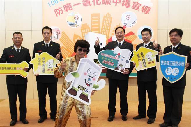 農曆年節將至,加上新竹市冬季風大,消防局3日舉辦「瓦斯安全暨防範一氧化碳中毒」宣導,現場結合網路火紅PPAP影片,出動真人版「日本大叔Piko太郎」,以詼諧逗趣的表演,提醒民眾使用瓦斯熱水器,要隨時注意通風,平安過好年。