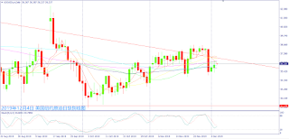 从日级别线图来看,一下影线阴烛早盘于30日均线附近震荡,受到美国总统对贸易协定一年后签署,造成美元出现卖盘回踩120日均线,短均线和60日均线下弯,昨日回踩10月W底颈线获得支撑买盘,今天没有再跌破该支撑价格有机会反弹到30日均线。今日留意欧元区服务业指数利好再度推升欧元上涨,可能造成美元回测昨日低点价格,晚间市场预期美国ADP利好将大可能带动美元反弹,而加拿大午夜前公布利率决议如果持平,在利好加元可能造成美元出现回调,并且需要关注中美和欧美贸易制裁决定,消息公布后都可能造成美元出现震荡走势。