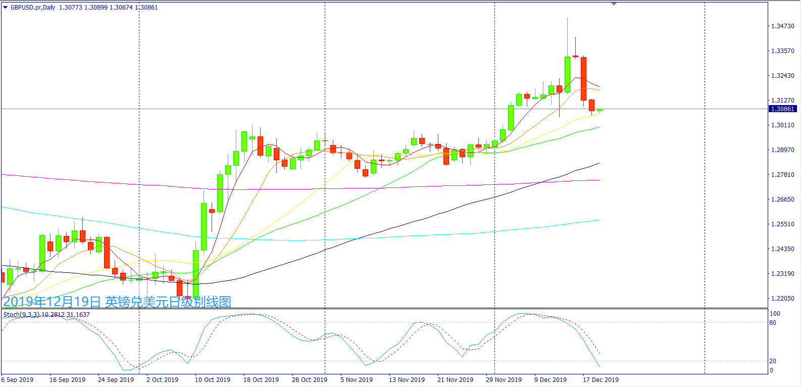 英镑兑美元昨日受到英国首相称有限期脱欧法案于20日送往下议院,早盘镑美出现卖盘下跌62个点,镑美跌破1.3100关口出现支撑买盘带动上行,午后受到英国经济数据和欧洲央行行长拉加德讲话,造成美元震荡也让镑美处于震荡整理;晚间欧洲央行官员称仍需要宽松货币,以及美联储官员多位称美国经济状况良好,美元出现强涨一度冲高97关口,镑美再度出现卖盘跌破当日最低价格,午夜过后美元回调整理下,镑美于1.3100关口下方振荡整理,终场下跌做收。