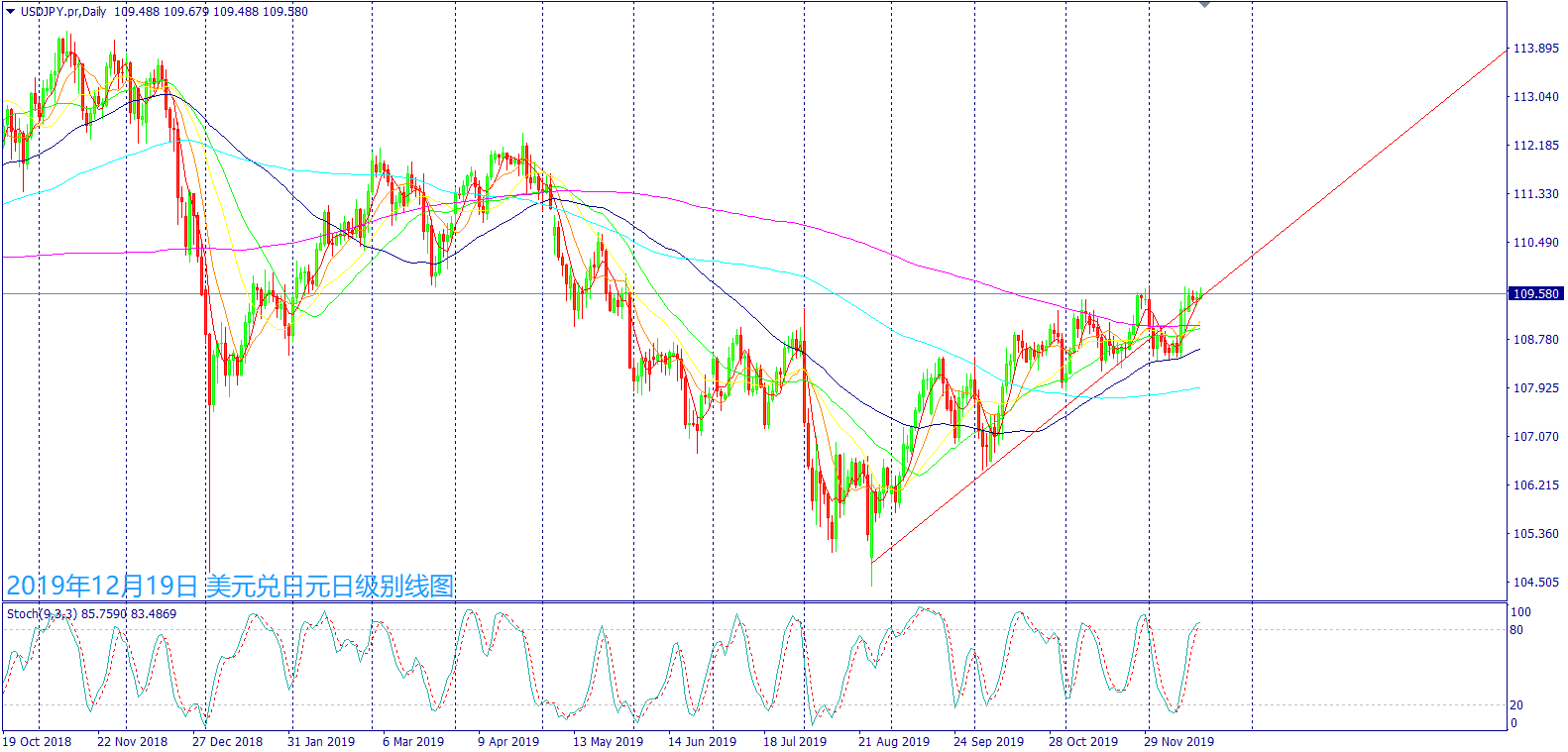 从日级别线图来看,一纺锤线阴烛受到英国首相脱欧限期于20日投票影响,早盘开出后即出现卖压走跌,直到晚间20日均线附近,获得市场对利率决议不降息的预期买盘,短均线下行或中均线上行,近期出现倒V反转,今日冲不上5日均线可能出现卖盘回踩30日均线。今日留意欧亚市场出现预期买盘带动镑美上行,留意下午英国经济数据公布是否出现扫单走势,晚间英国利率决议公布后可能急涨冲高,但留意预期买盘的获利卖压,可能造成镑美急跌回踩30日均线,直到晚间美元冲不过97关口,将大机会见到市场对脱欧法案乐观买盘。