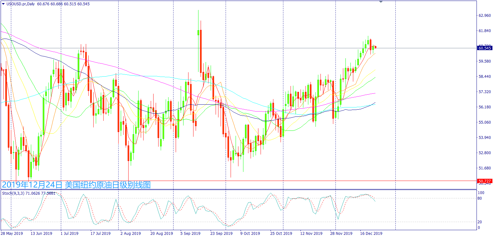 原油受到前一日下跌走势,亚洲市场纷纷出售原油造成下行,午后于60美元上方震荡整理,直到俄罗斯能源部长对于减产力挺讲话,一度带动油价震荡走扬;晚间受到美国耐久财数据不及预期,一度造成美股出现急跌走势,也托累油价回踩早盘整理价位,午夜过后出现投机买盘带动急涨,随后仍冲不过5日均线回调整理,终场仍上涨做收。