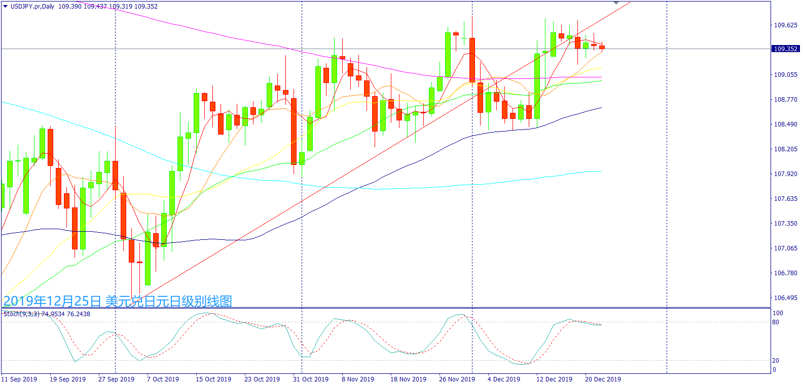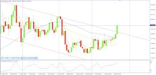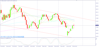 从日级别线图来看,一纺锤线短阴烛昨日界于5日和10日均线间震荡整理,近期再度出现高挡震荡整理走势,相似于10月份整理过后买盘带动急涨突破新高价位,而2019年1月4日美日一度出现闪崩500个点,如果元旦前没有出现明显修正,留意元旦过后可能出现大幅度震荡走势。今日为耶诞节假期,MT4系统没有报价。