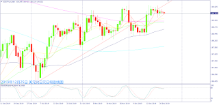 从日级别线图来看,一十字线盘中介于240日均线附近震荡整理,近5天延着5日均线上行,目前趋势仍处于下降矩形的空方走势,短线修正空方背离和利好消息带动反弹,但中长均线维持下行,因此短线处及12月11日起跌阻力价位,可能处于震荡整理走势。今日为耶诞节假期,MT4系统没有报价。