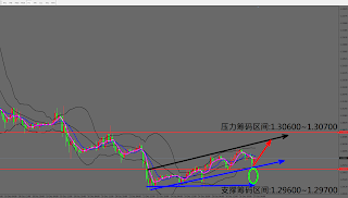目前短线上方压力区间位于1.30600~1.30700,下行方向,初步支撑区间于1.29600~1.29700,操作心态偏短多为主,想进场做短多的投资者可考虑在1.29900至1.29970区间轻仓买进,止损点位可考虑设置1.29750下方。