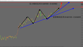 目前短线上方压力区间位于0.66900~0.66980,下行方向,初步支撑区间于0.66550~0.66600,操作心态偏短多为主,想进场做短多的投资者可考虑在0.66730至0.66780区间轻仓买进,止损点位可考虑设置0.66660下方。