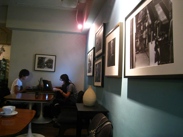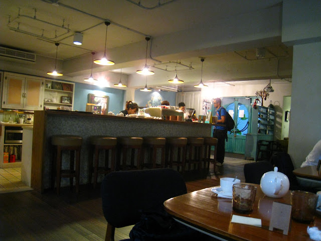 極具特色的藍、馬賽克拼貼、昏暗的室內、各種角落的氣氛,這邊人多的時候沒有想像中那麼安靜,但透著吵雜的人聲和泡咖啡的香,是一種人文與藝術的結合,也是喧鬧的台北市,微光下溫馨的一角。