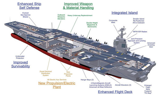 生活後勤則是對所有3000人乘員的食衣住行育樂全都要安排妥當——這可不是像以往船艦200人左右的編組!以最基本的兩周不靠岸要求而言,如何設計使這麽多人能夠合處於一個有限空間,並要確定每位官兵仍能保持體力、戰力和士氣,這將是一個聯接著生理和心理安頓的重要課題。