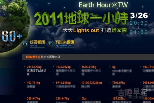 EARTH HOUR 活動網址:http://earthhour.tw/