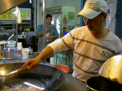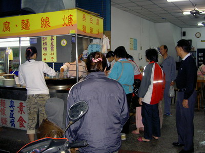 好不容易在自強夜市看到「素食」兩個字且店門開著,我一個箭步衝上前去迅速的搜尋牆上的menu,開心的點了一堆,只見老闆用最燦爛的笑容說:「不好意思,我們休息了」,當場欲哭無淚的我失落地和愛「車」再去尋找下一個「素食」字眼,就在餓到快昏倒的自己終於見到「抓餅」,趕忙去詢問可否做成素食,當「可以」兩字從老闆嘴中說出時,我想那是當天我聽到讓我最快樂的字眼了,正當坐定準備享受美味「抓餅」時,一旁瞄到有臭豆腐的攤位,生意還不錯喔!覺得光吃抓餅絕對不夠的我,又跑去詢問老闆「可以做成素的嗎?」