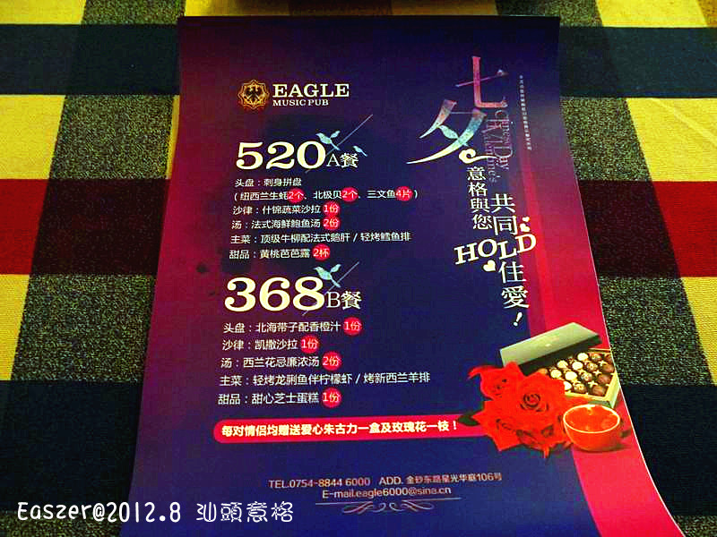 好了~以上的就是Easzer所點的情人節B餐~沒有服務費,但是多收了我兩塊錢..