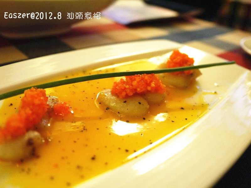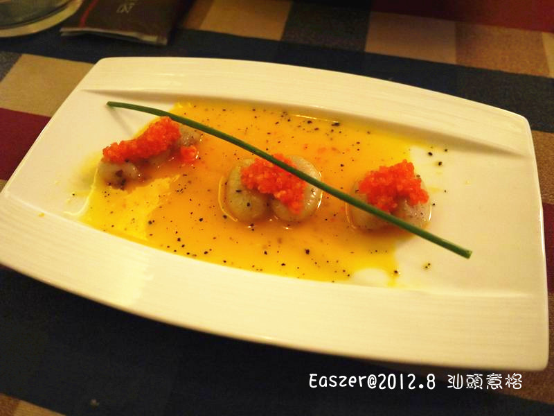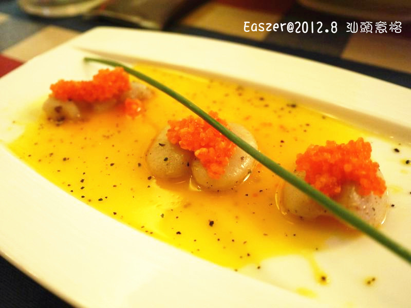 接下來上的才是菜單上的頭盤:北海帶子配香橙汁