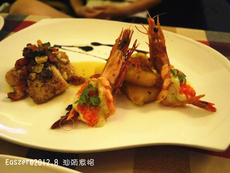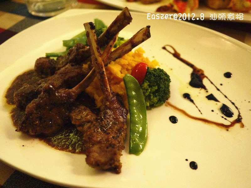 今天的主餐是烤新西蘭羊排與輕烤龍琍魚伴檸檬蝦