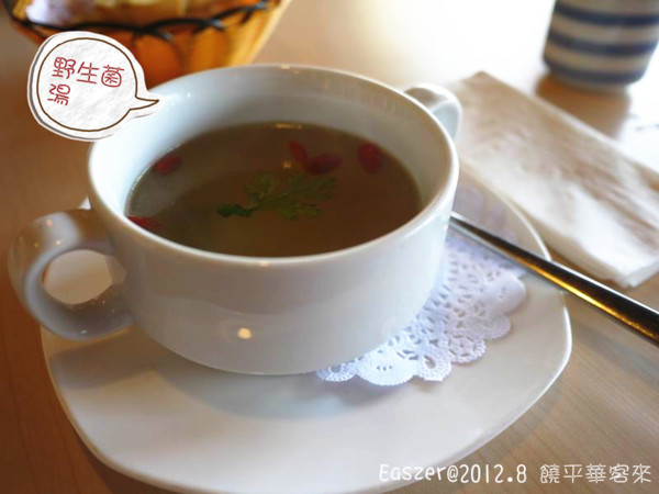 在點完餐之後,首先送上野生菌湯~裡面有杏鮑菇、黑面菇以及枸杞等養生益菌~可以無限續杯
