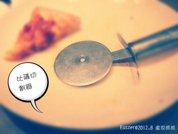 沒錯,這是未切的比薩,店家提供了一個鋸刀讓消費者自行愛切多少塊就切多少塊