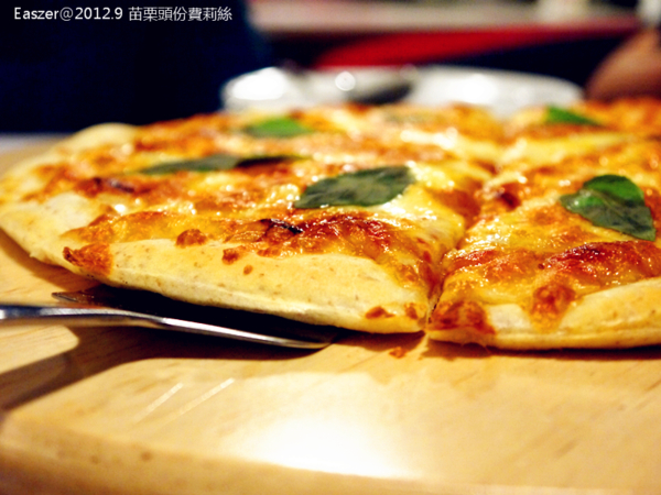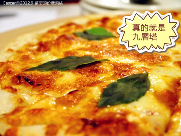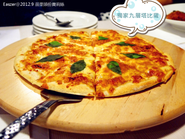 在點了各自的主餐之後,我們還加點了一個具有特色的九層塔比薩