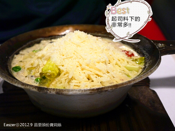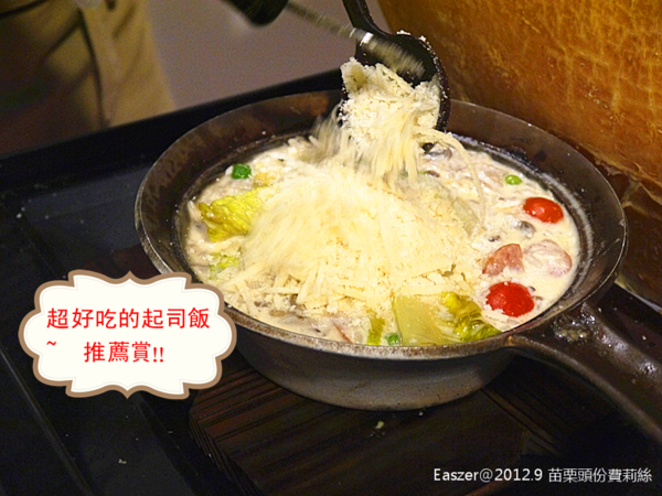 就這樣這一份起司燴飯上裝著滿滿的現刮起司
