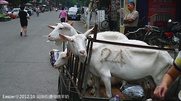 在這邊有不少人會像這樣將育有羊奶的乳羊推出街上當街擠來販賣