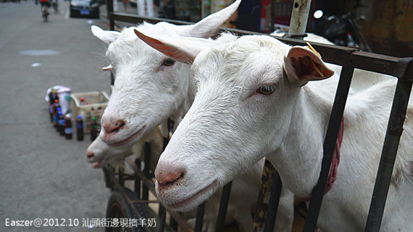 在台灣像這樣當街擠羊奶販售的情況可以說幾乎看不到