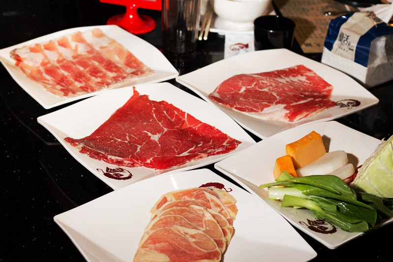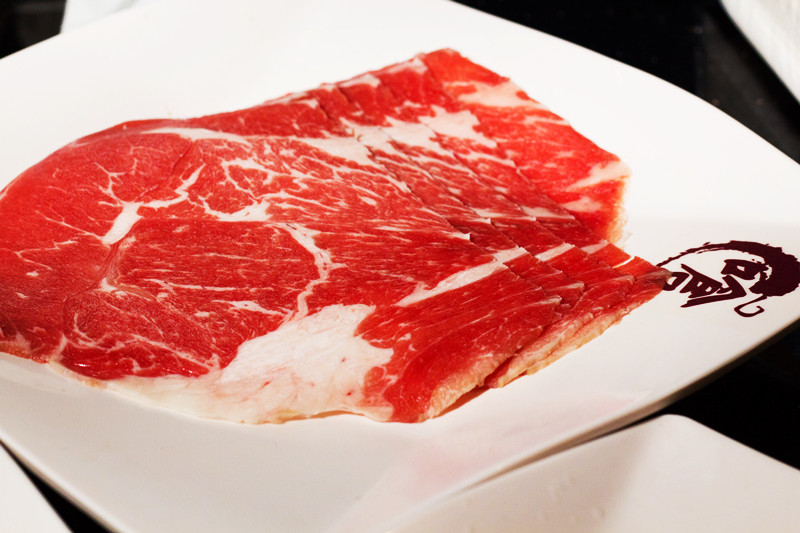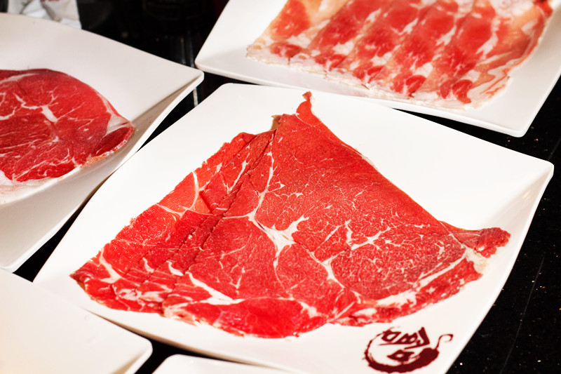 右邊則是濃郁的大骨湯,用大量的牛骨熬煮,味道十分濃郁鹹度適中,帶有一點微微蒜味,不敢吃辣的人用這鍋來涮肉也不會不夠味。