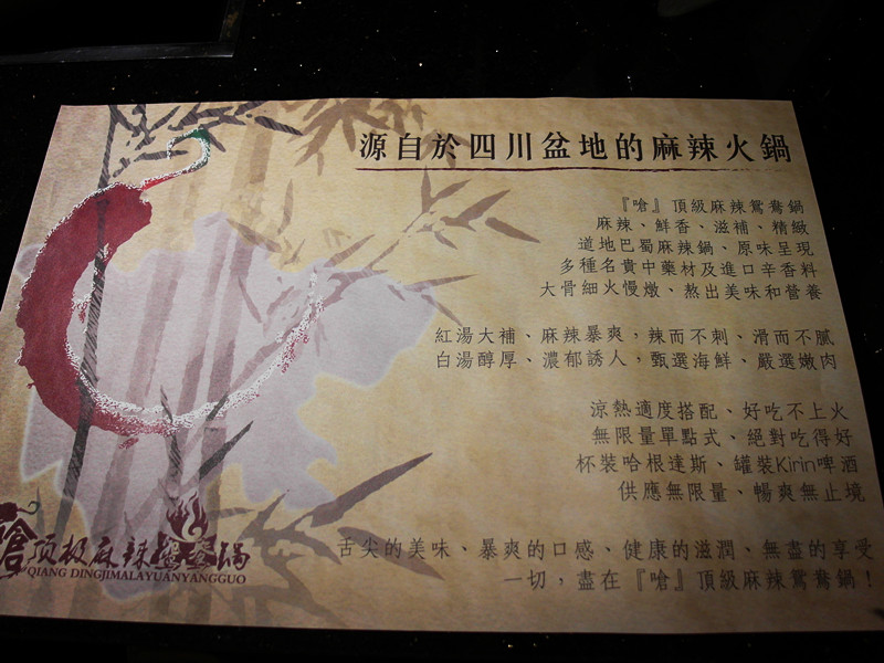 在102年底才開幕的嗆頂級麻辣鴛鴦鍋,是小蒙牛相關企業的新火鍋品牌,聽說主打的是頂級帝王蟹吃到飽!?有沒有這麼誇張?