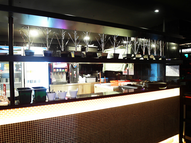 半開放的廚房,可以偷看廚師有沒有保持衛生XD