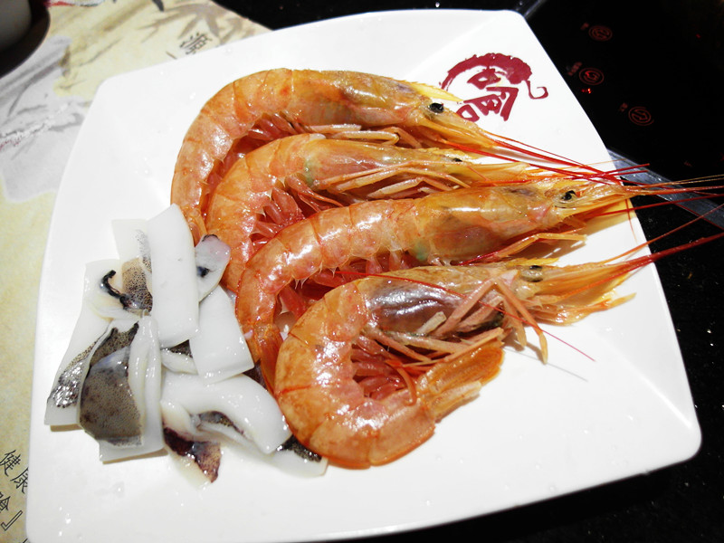 天啊,必須得老實承認哥就是鄉下俗,還真沒看過還沒煮就害羞(紅)的蝦子!!!一開始還以為是店家貼心先煮好送上桌,不過後來想想,應該要貼心的連殼一起剝好才對啊XD…後來才知道原來根本還是冰的…