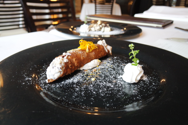 最後最後!當然是女生們最期待的甜點及咖啡時間,他們家的甜點全是師傅每天手工現做的喔,今天吃的是西西里特有的甜點Cannoli脆皮乳酪捲,外頭炸的酥脆配上甜而不膩的乳酪醬,帶點柑橘的香氣與乳酪相遇,味到的平衡真是太美好了!另一道是巧克力杏仁霜,吃起來是冰淇淋的口感,入口即化,濃郁的杏仁味再配上Espresso或是Latte,瞬間真的有幸福感圍繞在身邊的感覺。