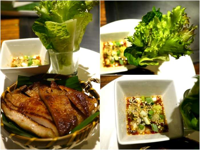 第二種吃法是包上泰板燒特別購入的新鮮有機生菜,菜梗的甜味稍微中和煙燻松阪豬的濃厚口味,整體吃來相當清爽!